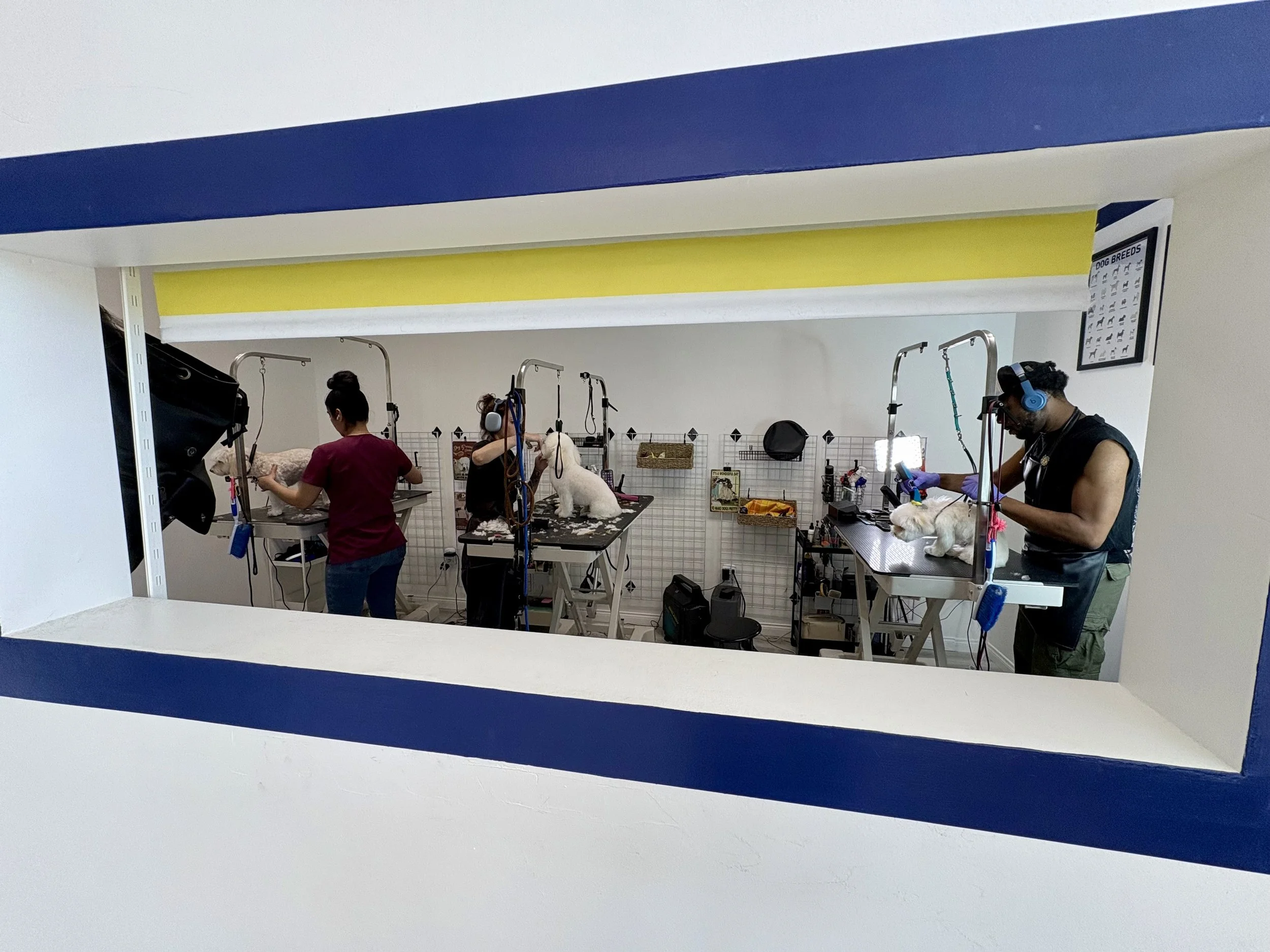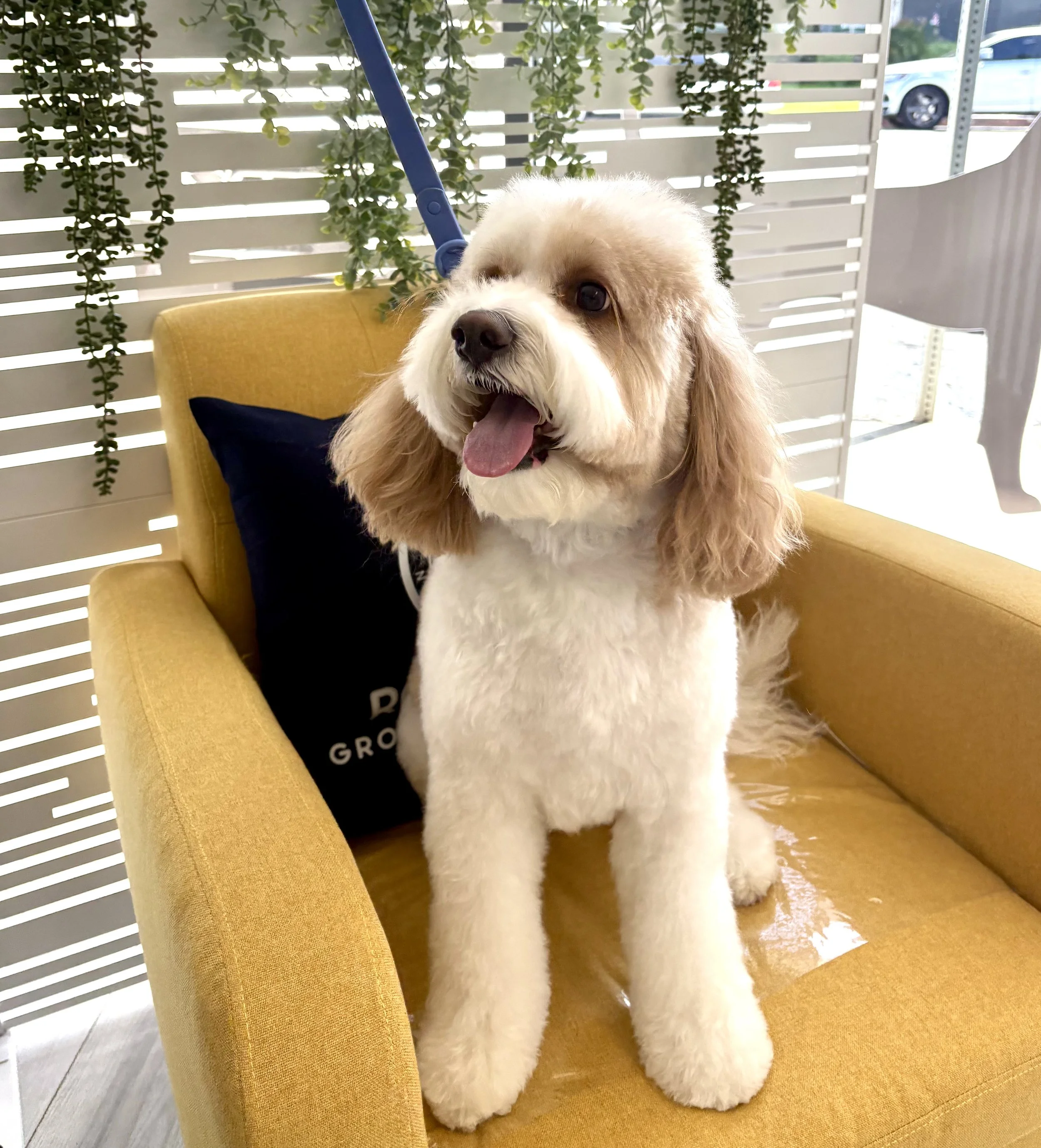 Full Service Grooming includes: Oatmeal Shampoo & Conditioner, Blueberry Facial, Nail Trim, Anal Gland Expression, Teeth Brushing, Ear Cleaning, Sanitary Trim (upon request) + Brush /Blow-out.